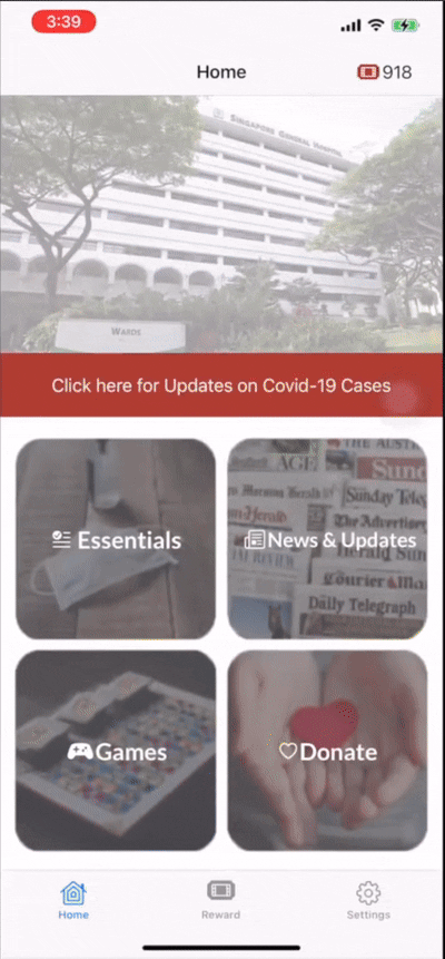 Community support mobile app concept designed to help elderly and vulnerable residents with essentials, rewards, and daily engagement during lockdown periods.