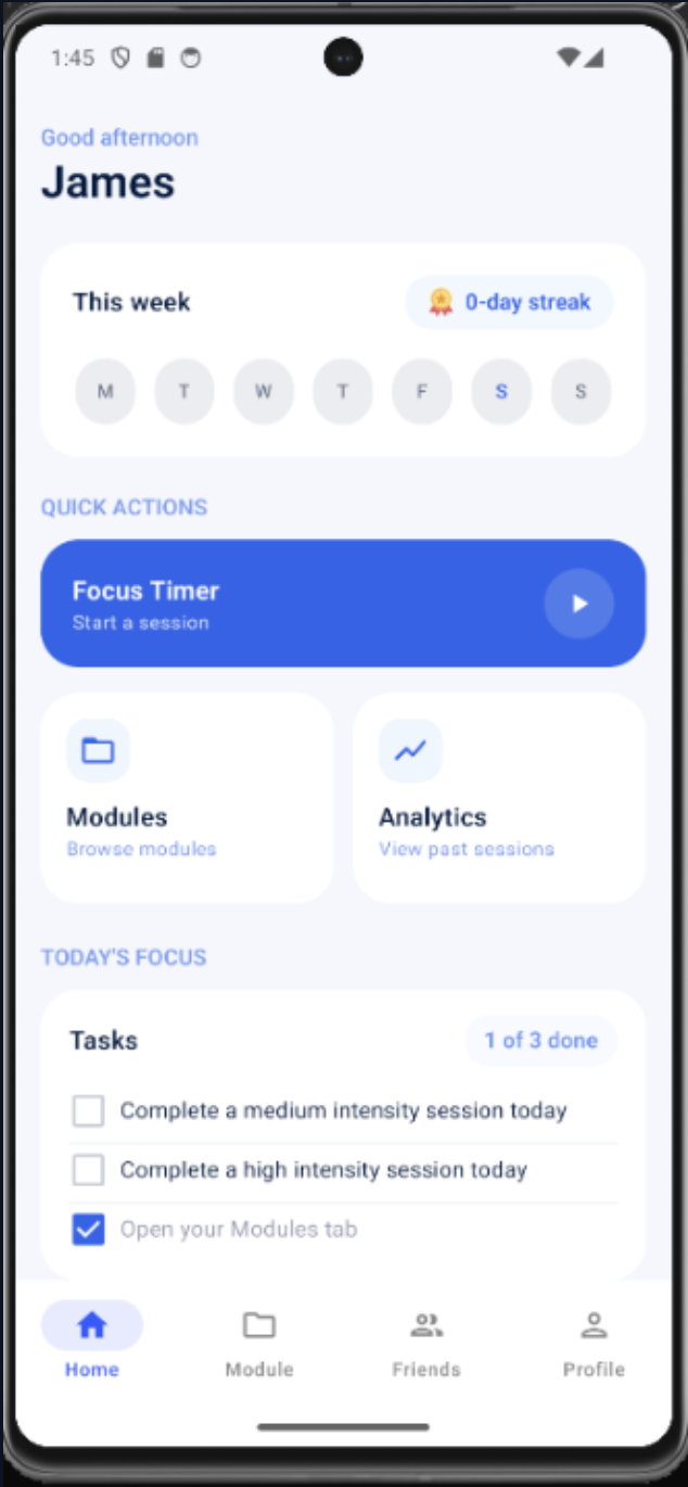 Android study companion integrating PDF organisation, AI-generated notes and quizzes, focus sessions, shared study, and analytics.