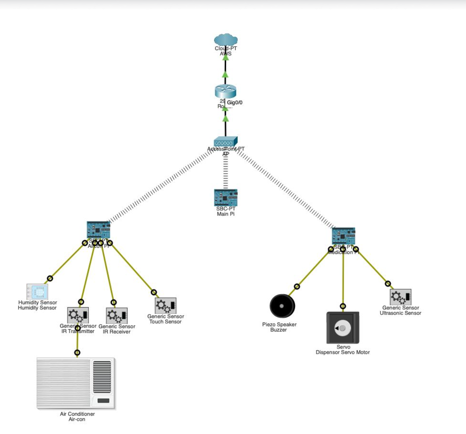 IoT healthcare support system with monitoring, medication automation, and real-time alerts using sensors, MQTT, and cloud messaging.